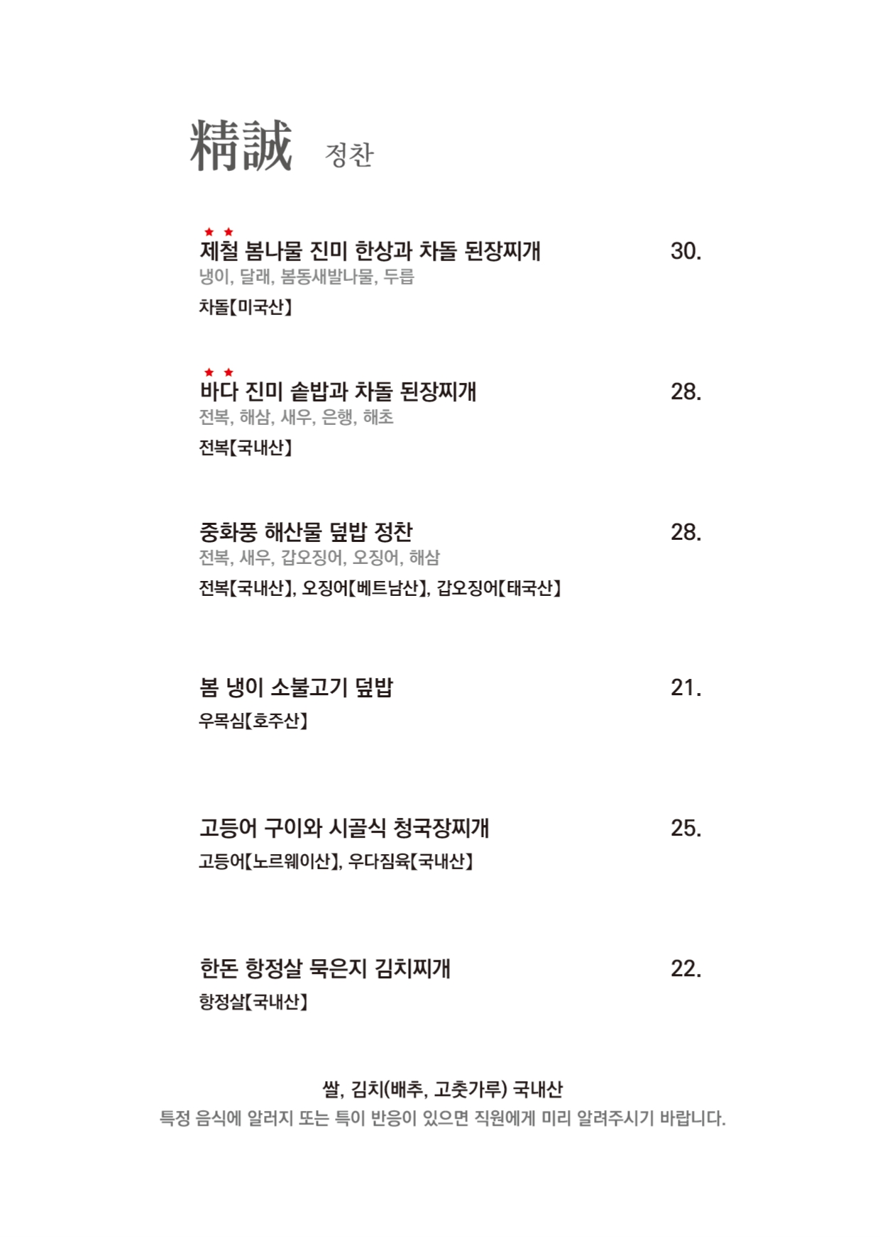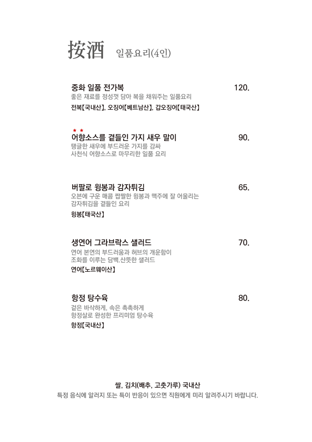 식음료 메뉴 안내